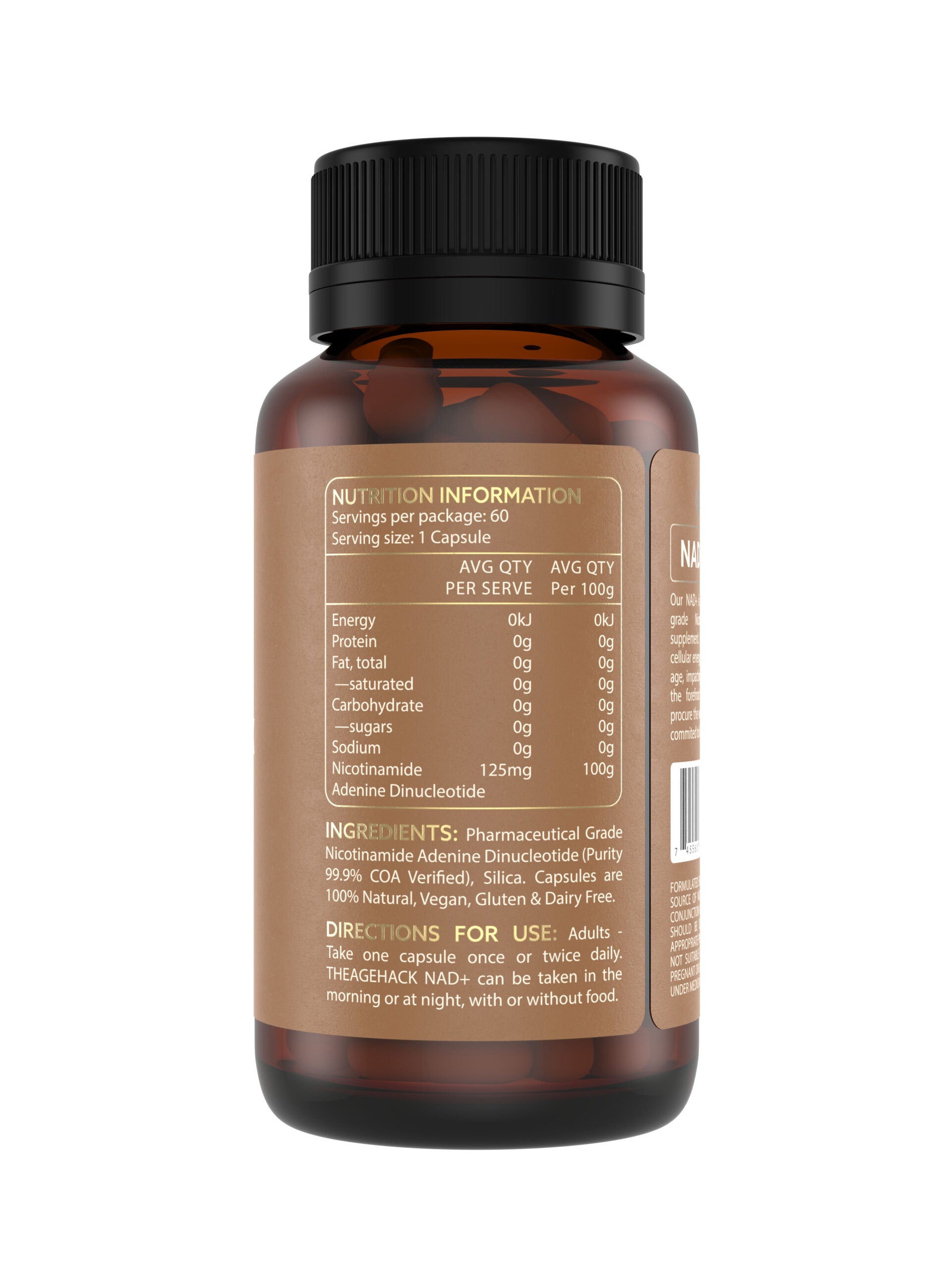 Adults – Take one capsule twice daily. THEAGEHACK NMN can be taken in the morning or at night, with or without food.